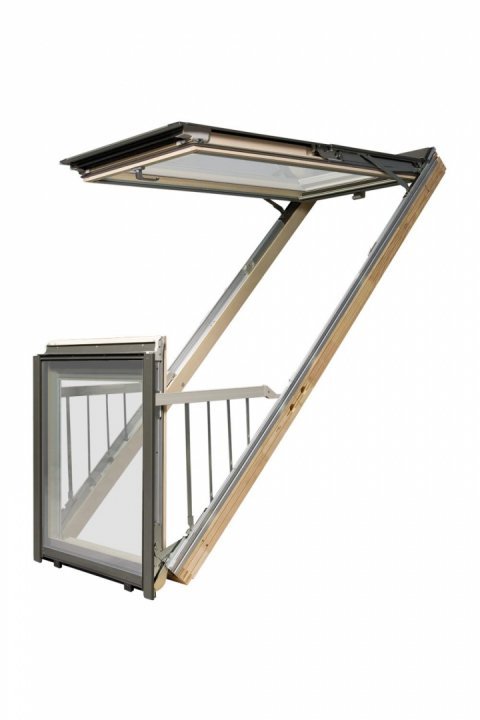 Balustradele laterale sunt integrate în cerceveaua inferioară şi se deplasează înainte în timpul deschiderii cercevelei.